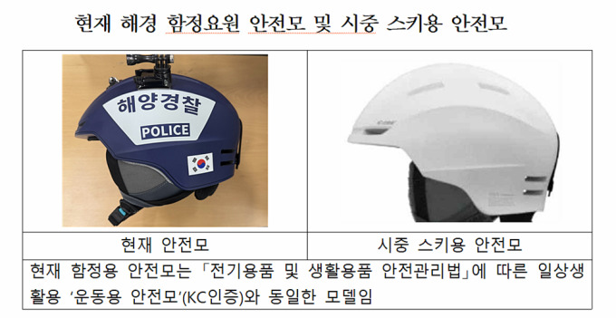 당초 해경은 'KCs' 인증 안전모를 함정 요원들에게 보급해 왔으나, 2021년부터 'KC' 인증 스키용 안전모로 교체한 것으로 파악됐다.