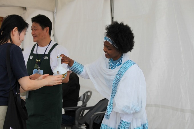 지난 2024년 제2회 세계커피콩축제에서 에디오피아 바리스타가 커피시음을 제공하고 있다. [사진=시흥시] |