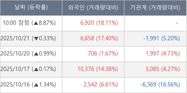 [표] 외국인ㆍ기관 순매매량 (단위 주)