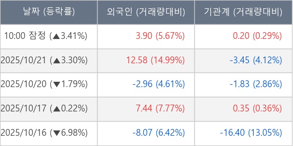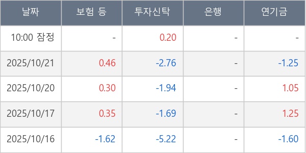 [표] 주요 기관별 순매매량 (단위 만주)