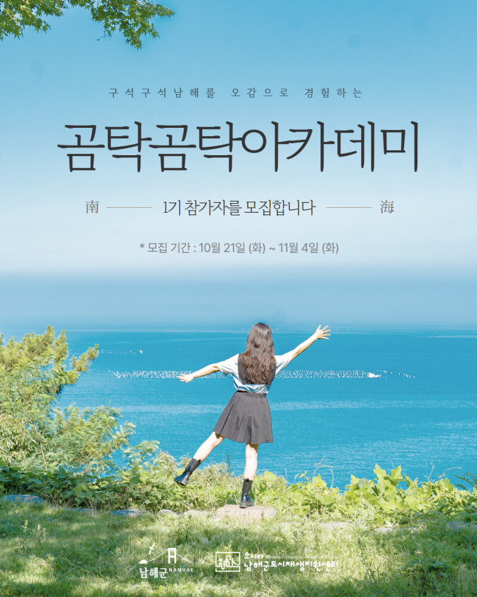 [남해=뉴스핌] 최민두 기자 = 경남 남해군이 지역의 일상과 사람, 공간을 통해 남해의 정체성을 탐구하는 '2025 보물섬 곰탁곰탁 아카데미' 1기 수강생 모집에 나섰다.