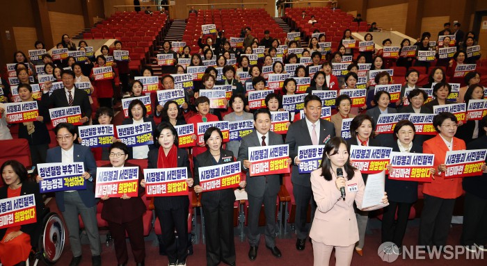 [서울=뉴스핌] 정일구 기자 = 장동혁 국민의힘 대표가 22일 오전 서울 여의도 국회 의원회관에서 열린 국민의힘 전국여성지방의원 워크숍에서 서명옥 중앙여성위원회 위원장, 정희용 사무총장, 나경원 의원 등 참석자들과 '무능정권 규탄' 구호를 외치고 있다. 2025.10.22 mironj19@newspim.com