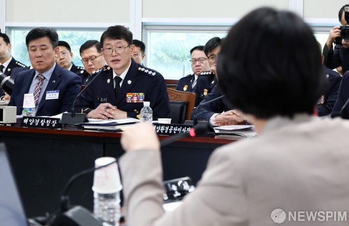 [인천=뉴스핌] 최지환 기자 = 김용진 해양경찰청장이 22일 인천 연수구 해양경찰청에서 열린 국회 농림축산식품해양수산위원회의 해양경찰청 등에 대한 국정감사에서 의원 질의에 답변하고 있다. 2025.10.22 choipix16@newspim.com