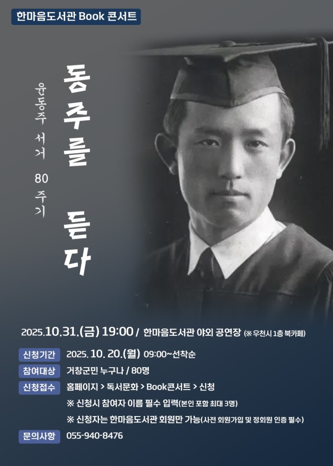 거창군 관계자는 "윤동주의 시 세계와 인간적인 면모를 지역민과 함께 되짚어보는 뜻깊은 시간이 될 것"이라며 "군민들의 많은 관심과 참여를 바란다"고 말했다.
