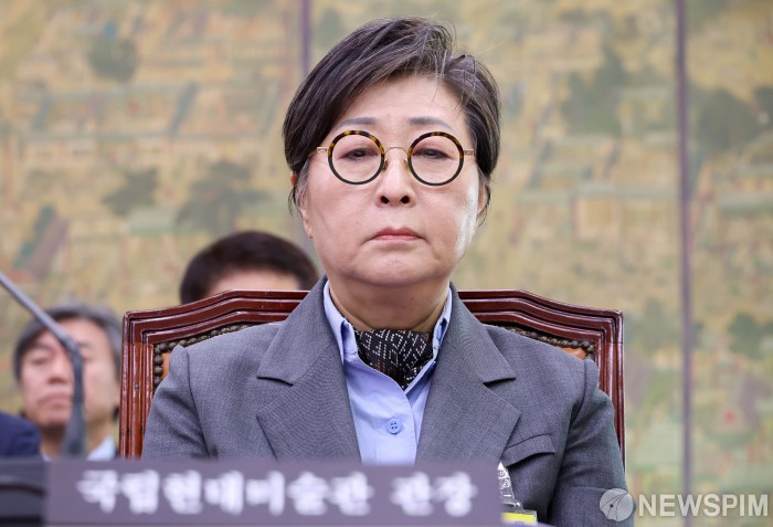 [서울=뉴스핌] 정일구 기자 = 김성희 국립현대미술관장이 22일 오후 서울 여의도 국회 문화체육관광위원회에서 열린 국립중앙박물관 등에 대한 국정감사에 출석해 있다. 2025.10.22 mironj19@newspim.com