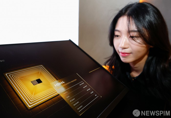 [서울=뉴스핌] 류기찬 기자 = 제27회 반도체대전(SEDEX 2025)이 개막한 22일 오후 서울 강남구 코엑스에서 관람객들이 SK하이닉스의 HBM4 실물을 살펴보고 있다. 2025.10.22 ryuchan0925@newspim.com
