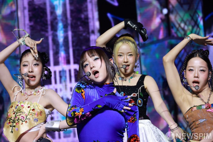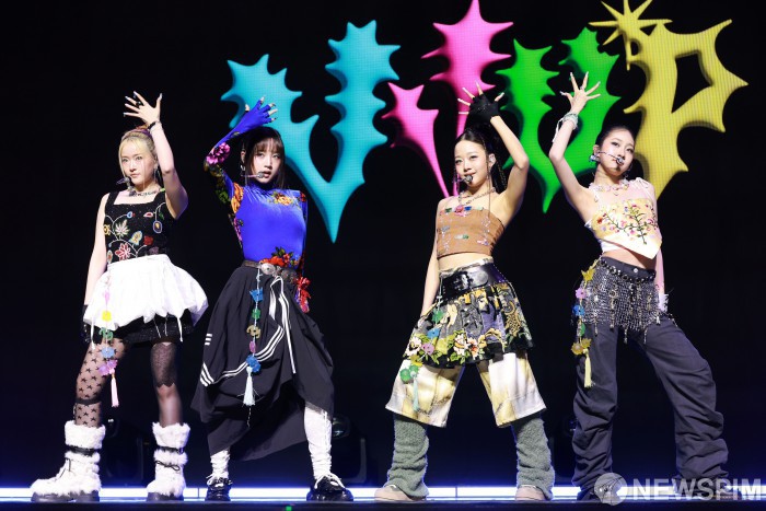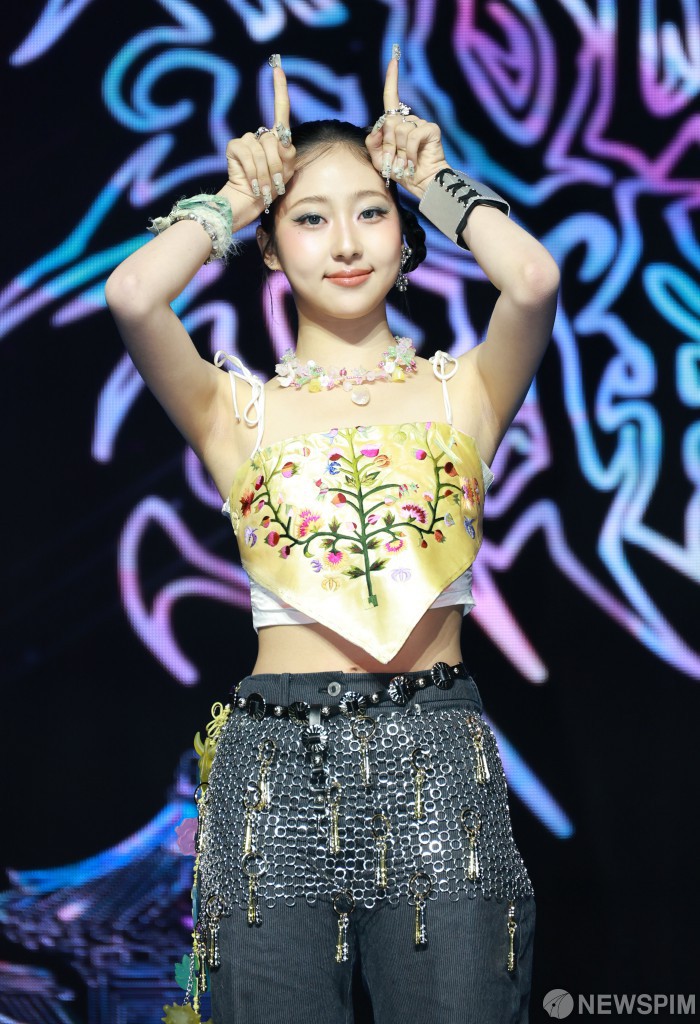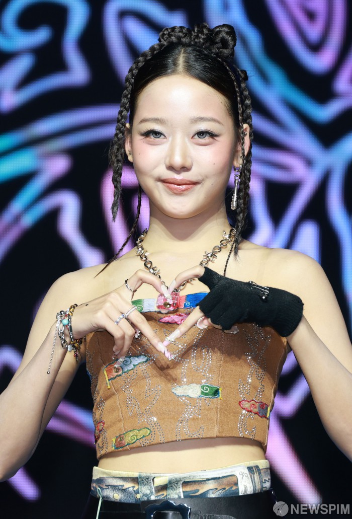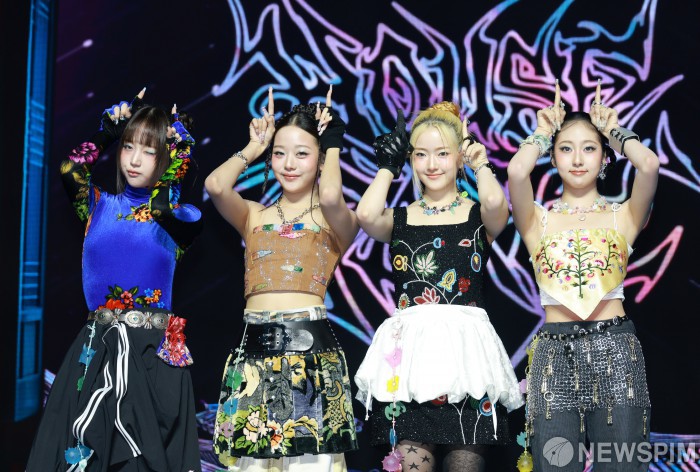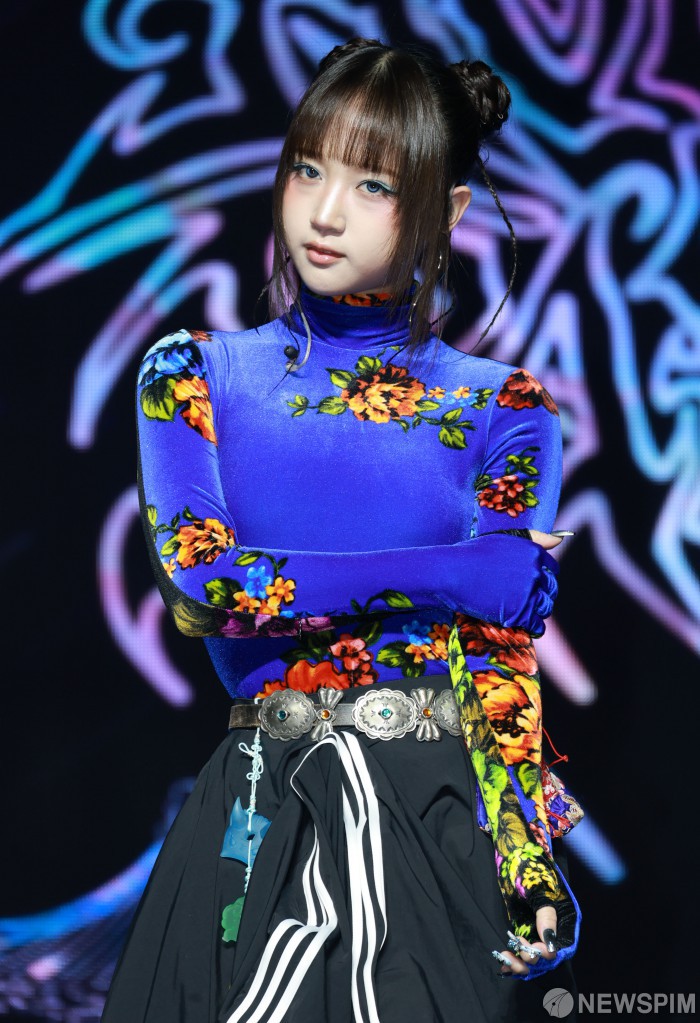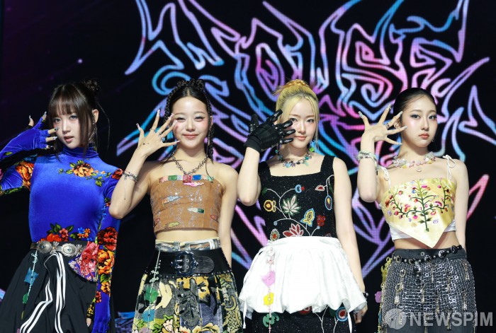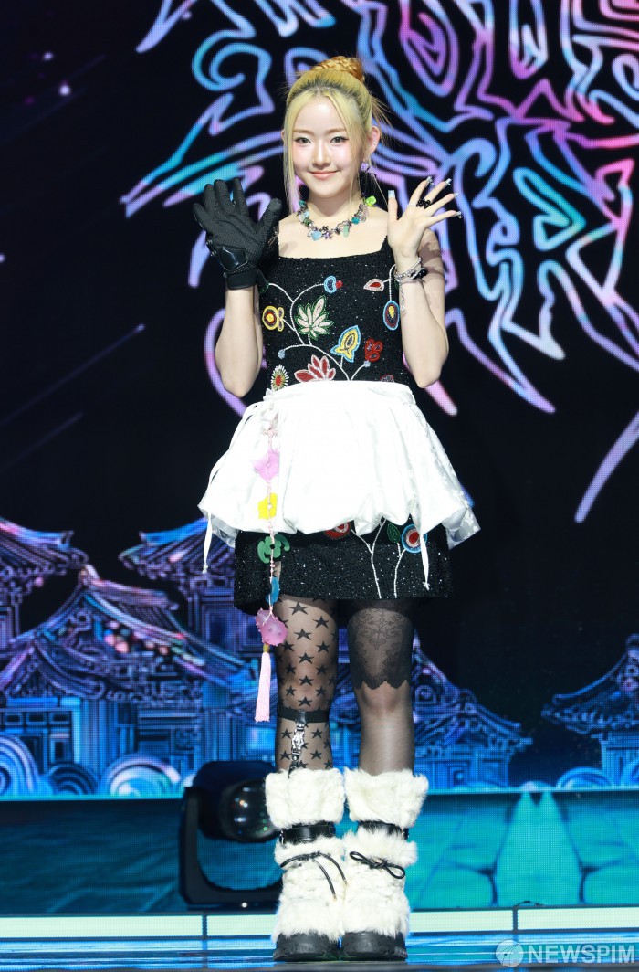 女团 VVUP于22日在首尔举行首张迷你专辑发布会,并表演先行曲《House Party》。这是一首电子音乐作品,特点是充满赛博感性与霓虹灯色彩的夜店氛围,带来强烈的视听盛宴。【图片=纽斯频通讯社】