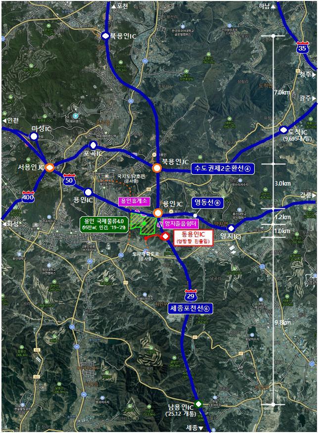 동용인IC는 용인 국제물류4.0 유통단지의 고속도로 접근성을 높이고, 용인특례시 처인구 양지면 일대 주민들의 이동 편의를 개선하기 위해 추진된다. 총사업비는 약 936억원으로, 일평균 교통량은 2만7471대로 예상된다. 동용인IC는 향후 물류단지 진입도로 및 국도 42호선과 연결될 예정이며, 실시설계(1년)와 공사(3년)를 거쳐 2029년 개통을 목표로 하고 있다.