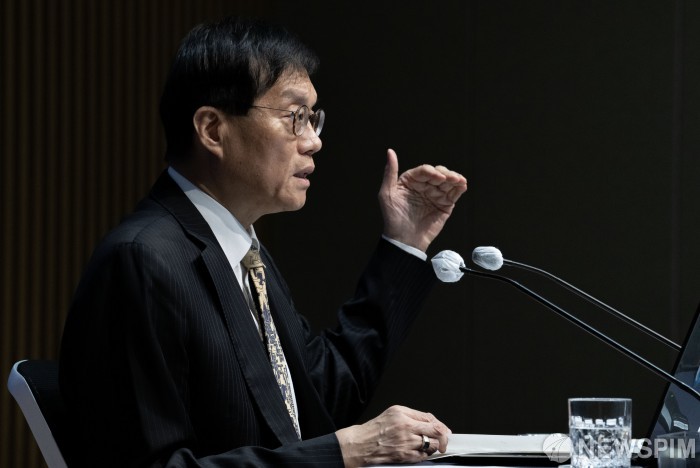 [서울=뉴스핌] 사진공동취재단 = 이창용 한국은행 총재가 23일 오전 서울 중구 한국은행에서 열린 금융통화위원회 본회의 후 기자간담회를 하고 있다. 2025.10.23 photo@newspim.com
