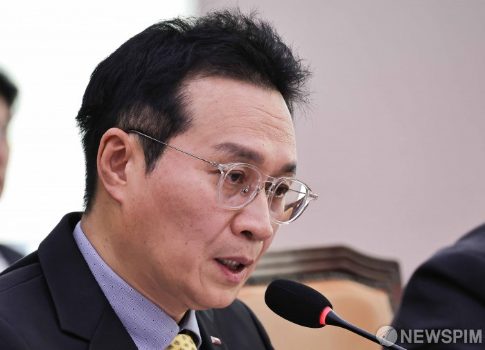 [서울=뉴스핌] 윤창빈 기자 = 유현석 한국콘텐츠진흥원장 직무대리가 23일 오전 서울 여의도 국회에서 열린 문화체육관광위원회의 한국콘텐츠진흥원 등에 대한 국정감사에서 의원 질문에 답변하고 있다. 2025.10.23 pangbin@newspim.com
