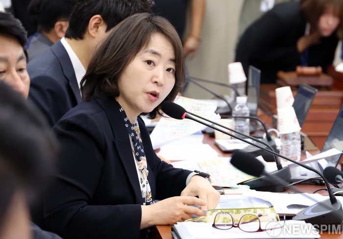 [서울=뉴스핌] 정일구 기자 = 이주희 더불어민주당 의원이 23일 오전 서울 여의도 국회 과학기술정보방송통신위원회에서 열린 한국방송공사 등에 대한 국정감사에서 질의하고 있다. 2025.10.23 mironj19@newspim.com
