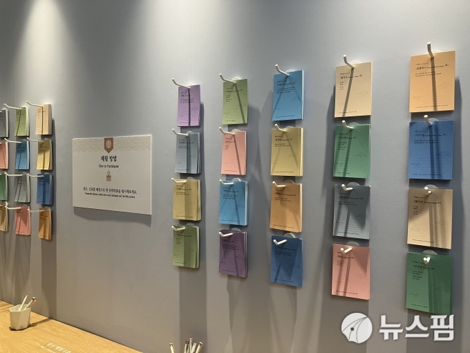 [세종=뉴스핌] 신도경 기자 = 경주 APEC 경제전시장에 경주를 배경으로 한 문학작품 필사 공간이 만들어져 있다. 2025.10.23 sdk1991@newspim.com |