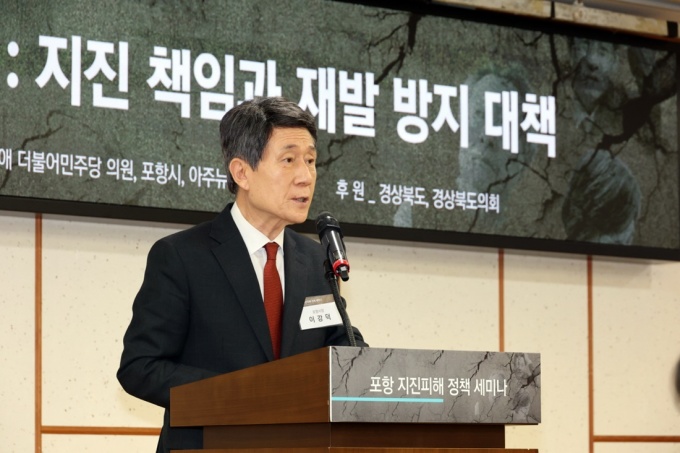 [포항·서울=뉴스핌] 남효선 기자 = '포항지진' 손해배상 소송 관련 상고심을 앞두고 '포항촉발지진'의 책임과 재발 방지책을 묻는 정책 포럼이 국회에서 열렸다.