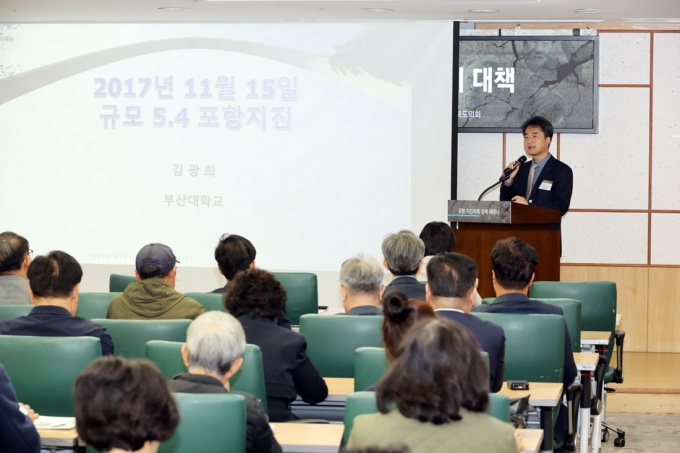 포럼에서 김광희 교수(부산대)는 '2017년 11월 15일 규모 5.4 포항 지진'을 주제로 포항 촉발 지진의 원인과 지진 발생 과정을 과학적으로 설명했다.