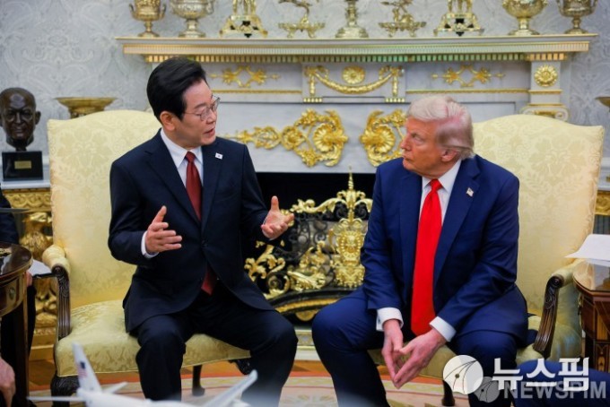 [워싱턴 로이터=뉴스핌] 이재명 대통령이 25일(현지시간) 미국 워싱턴 D.C. 백악관에서 도널드 트럼프 대통령과 정상회담을 하고 있다. 2025.08.26 photo@newspim.com |