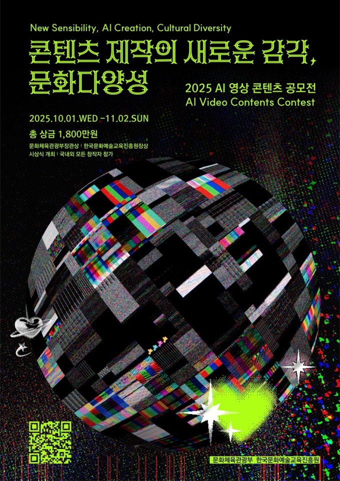 [서울=뉴스핌] 양진영 기자 = 문화체육관광부(장관 최휘영)가 주최하고, 한국문화예술교육진흥원(원장 직무대리 박창준)이 주관하는 '2025 문화다양성 AI 영상 콘텐츠 공모전'이 성황리에 진행 중이다.