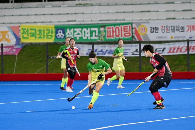 경북교육청이 '제106회 전국체육대회' 고등부 5회 연속 종합 3위를 달성했다. 경기는 2회 연속 우승을 달성한 성주여자고등학교 하키부의 경기 모습.[사진=경북교육청]2025.10.24 nulcheon@newspim.com