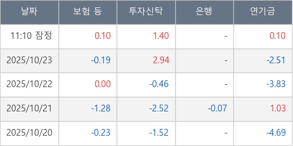 [표] 주요 기관별 순매매량 (단위 만주)