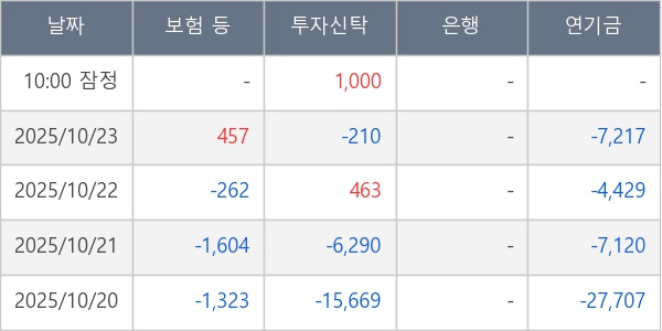 ※ 장중 매매동향은 잠정치이므로 실제 매매동향과 차이가 발생할수 있음