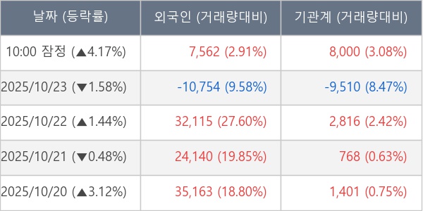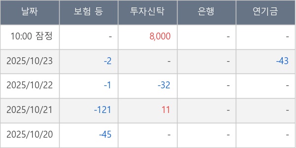[표] 주요 기관별 순매매량 (단위 주)