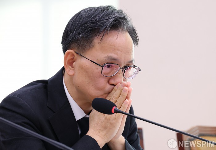 [서울=뉴스핌] 정일구 기자 = 김창범 법제처 차장이 24일 오전 서울 여의도 국회 법제사법위원회에서 열린 법제처에 대한 국정감사에 출석해 있다. 2025.10.24 mironj19@newspim.com
