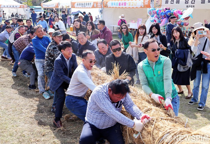 [서울=뉴스핌] 양윤모 기자 =24일 오후 경기도 이천시 이천농업테마공원에서 열린 '제24회 이천쌀문화축제'행사중 하늘공원에서 각읍면동 줄다리기 대회가 펼쳐지고 있다. '맛과 멋이 어우러진, 쌀로 잇는 즐거움'이란 주제로 열리는 올해 축제는 다양한 참여 및 체험 행사와 전통 공연 등으로 26일까지 열린다. [사진=이천시청] 2025.10.24 yym58@newspim.com