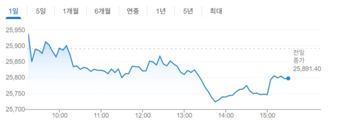 | [그래픽=구글 캡처] 인도 증시 니프티50 지수 24일 추이 |