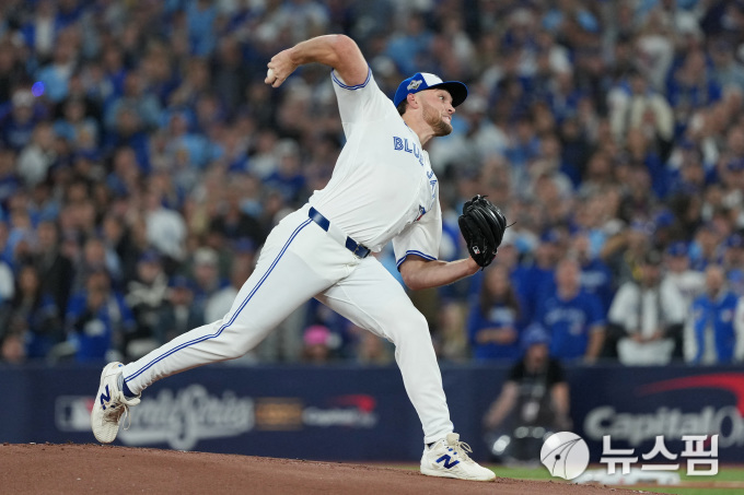 [토론토 로이터=뉴스핌] 장환수 스포츠전문기자= 1차전 선발 투수의 중책을 맡은 토론토 트레이 예새비지. 2025.10.25 zangpabo@newspim.com