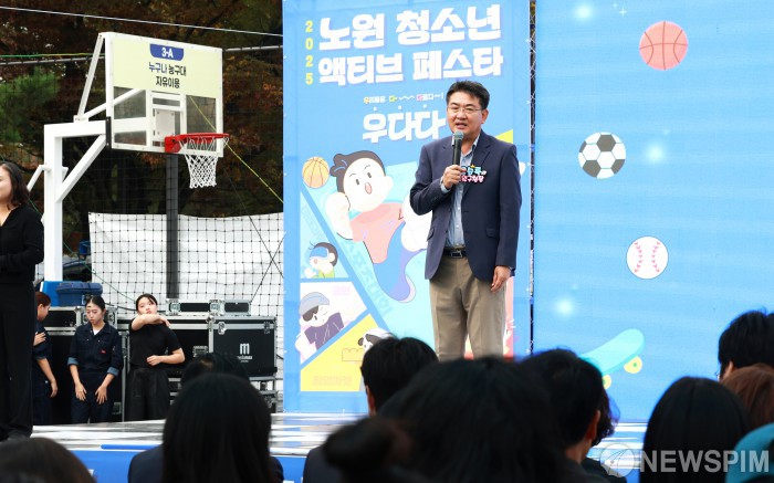 [서울=뉴스핌] 양윤모 기자 = 오승록 노원구청장이 25일 오후 서울 노원구 노해체육공원에서 열린 2025 노원 청소년 액티브 페스타 ‘우다다’에 참석해 인사말을 하고 있다. 행사장은 ▲스포츠 마당 ▲공연 마당 ▲체험 마당 ▲피크닉존으로 구성돼 공원의 특성을 살려 운영됐다. 스포츠 마당에서는 유소년 풋살, 청소년 3:3 농구, X-게임 등 청소년 맞춤형 스포츠 대회가 펼쳐졌다. 특히 서울 동북권 최초의 X-게임장 ‘노원 X-TOP’에서는 스케이트보드, BMX, 인라인 어그레시브, 스턴트 스쿠터 등 4개 종목의 X-게임 대회가 열려 짜릿하고 역동적인 현장을 연출했다. [사진=노원구청] 2025.10.25 yym58@newspim.com
