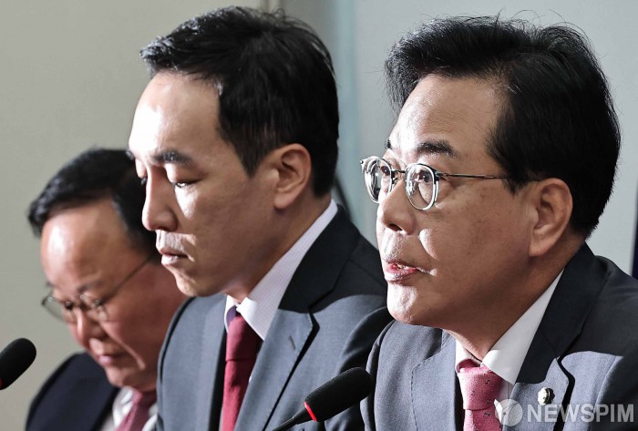 [서울=뉴스핌] 윤창빈 기자 = 송언석 국민의힘 원내대표가 27일 오전 서울 여의도 국회에서 열린 최고위원회의에서 모두발언을 하고 있다. 2025.10.27 pangbin@newspim.com