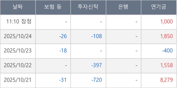 [표] 주요 기관별 순매매량 (단위 주)