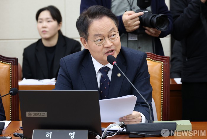 [서울=뉴스핌] 정일구 기자 = 허영 더불어민주당 의원이 27일 오전 서울 여의도 국회 정무위원회에서 열린 금융위원회·금융감독원 등에 대한 종합감사에서 질의하고 있다. 2025.10.27 mironj19@newspim.com