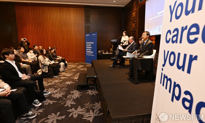 [서울=뉴스핌] 구윤철 부총리 겸 기획재정부 장관이 27일 서울 영등포구 콘래드호텔에서 일랑 고우드파잉 미주개발은행(IDB) 총재와 미주개발은행(IDB) 채용설명회(청년과의 대화)행사에 참석, 인사말을 하고 있다. [사진=기획재정부] 2025.10.27 photo@newspim.com
