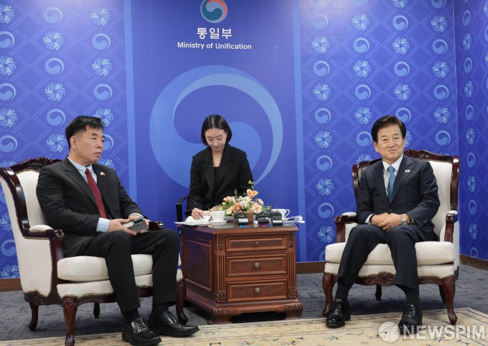 [서울=뉴스핌] 이길동 기자 = 정동영 통일부 장관이 27일 서울 종로구 정부서울청사에서 부호 주한 베트남 대사를 접견하고 있다.2025.10.27gdlee@newspim.com