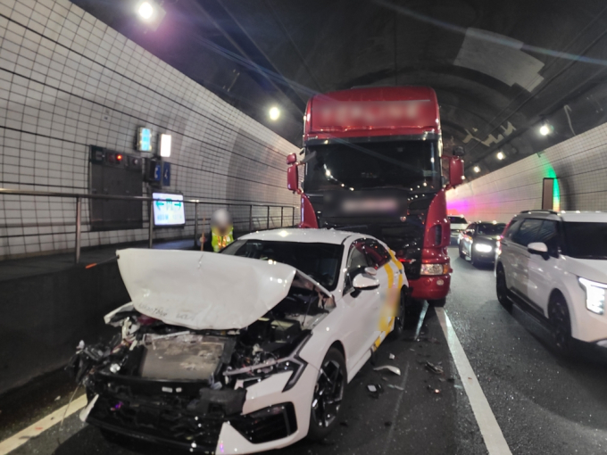 | 27일 오전 9시 20분께 부산 수정터널 5부두 방면에서 차량 5대가 잇따라 부딪히는 5중 추돌사고가 발생했다. [사진=부산진경찰서] 2025.10.27 |