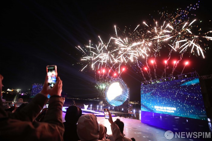 [서울=뉴스핌] 아시아태평양경제협력체(APEC) 정상회의 개최를 기념하는 멀티미디어쇼가 지난 27일 오후 경북 경주시 보문호 수상 공연장에서 열렸다. [사진=APEC 2025 KOREA & 연합뉴스] 2025.10.28 photo@newspim.com