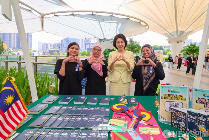 [서울=뉴스핌] 김혜경 여사가 지난 27일 말레이시아 쿠알라룸푸르의 K-푸드 팝업스토어를 찾아 관계자들과 기념촬영을 하고 있다. [사진=대통령실] 2025.10.28 photo@newspim.com