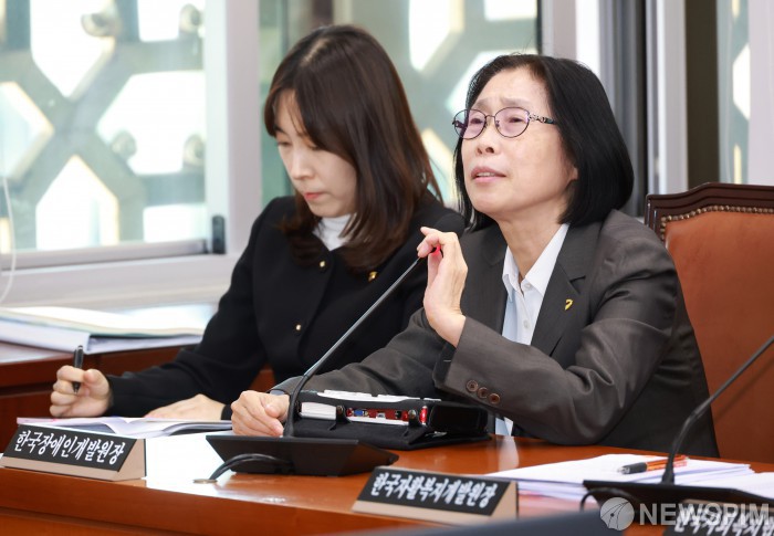 [서울=뉴스핌] 김학선 기자 = 이경혜 한국장애인개발원장이 28일 서울 여의도 국회 보건복지위원회에서 열린 한국노인인력개발원, 한국사회보장정보원 등에 대한 국정감사에서 의원질의에 답하고 있다. 2025.10.28 yooksa@newspim.com