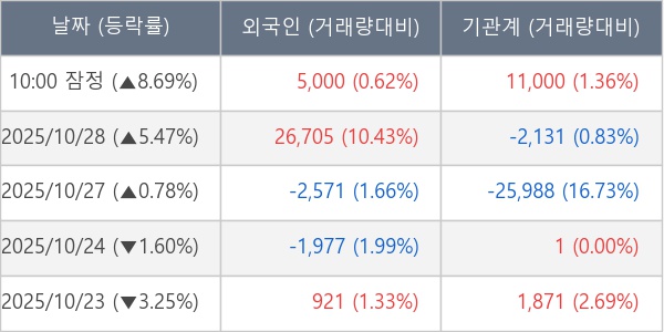 [표] 주요 기관별 순매매량 (단위 주)