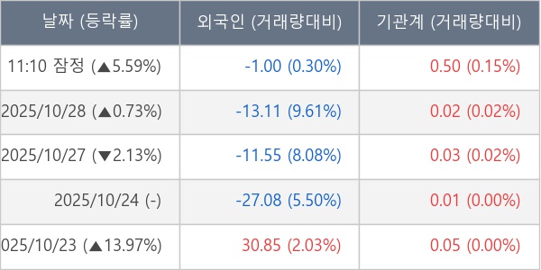 [표] 외국인ㆍ기관 순매매량 (단위 만주)