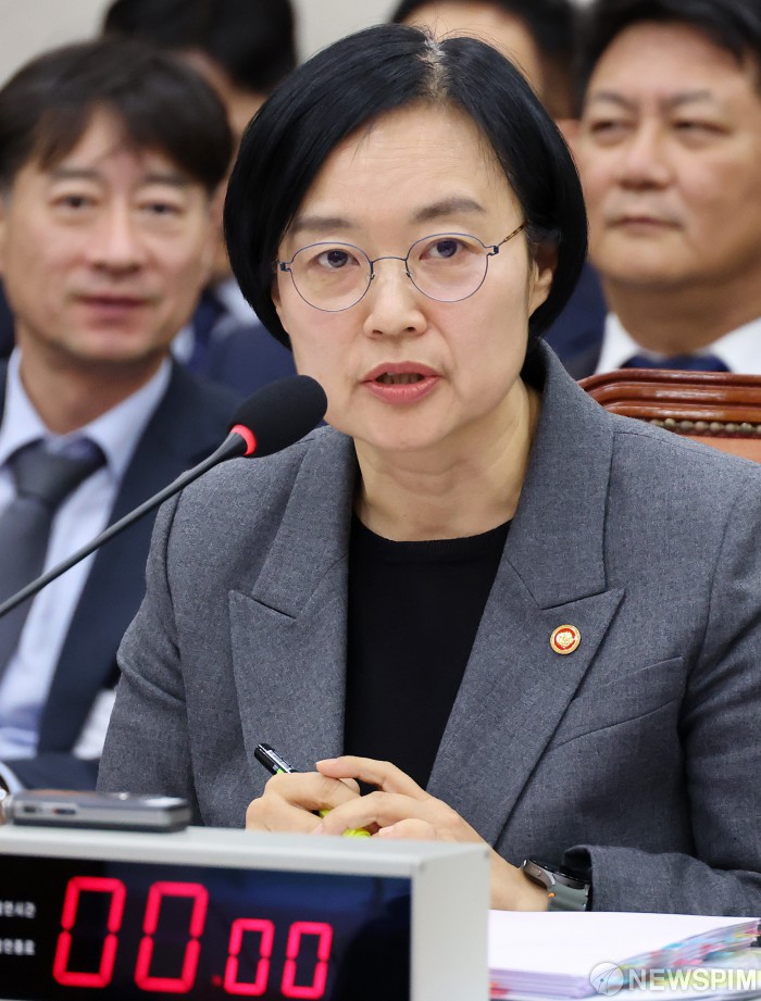[서울=뉴스핌] 정일구 기자 = 한성숙 중소벤처기업부 장관이 29일 오후 서울 여의도 국회 산업통상자원중소벤처기업위원회에서 열린 중소벤처기업부 등에 대한 종합감사에서 의원 질의에 답하고 있다. 2025.10.29 mironj19@newspim.com