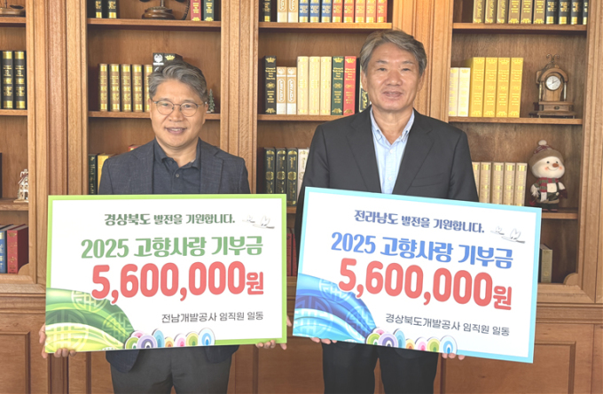 [무안=뉴스핌] 조은정 기자 =전남개발공사와 경북개발공사가 3년째 '고향사랑기부제' 상호기부를 추진하며 영호남 상생과 화합을 도모하고 있다.