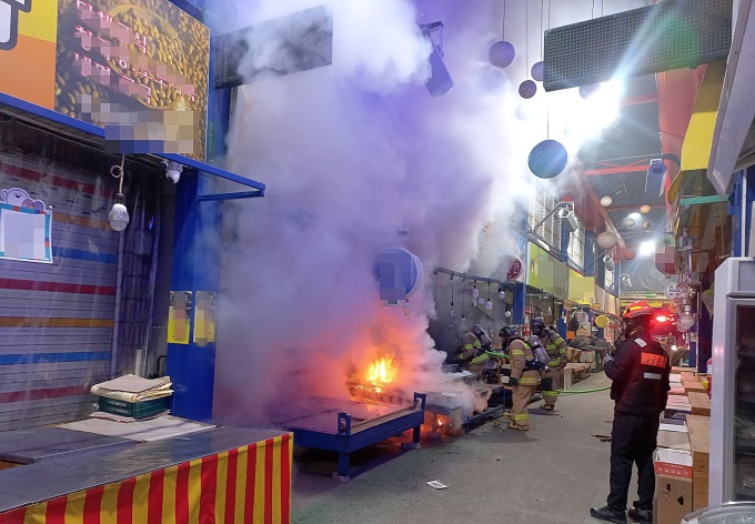| 지난 2월 13일 대전 서구 도마큰시장 화재 모습. [사진=대전소방본부] 2025.10.30 nn0416@newspim.com |