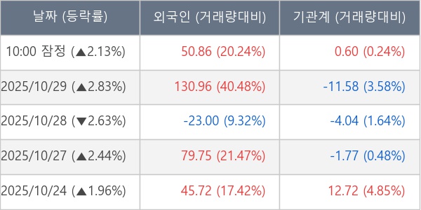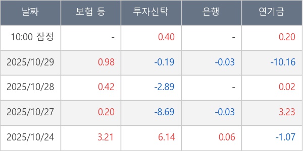 [표] 주요 기관별 순매매량 (단위 만주)