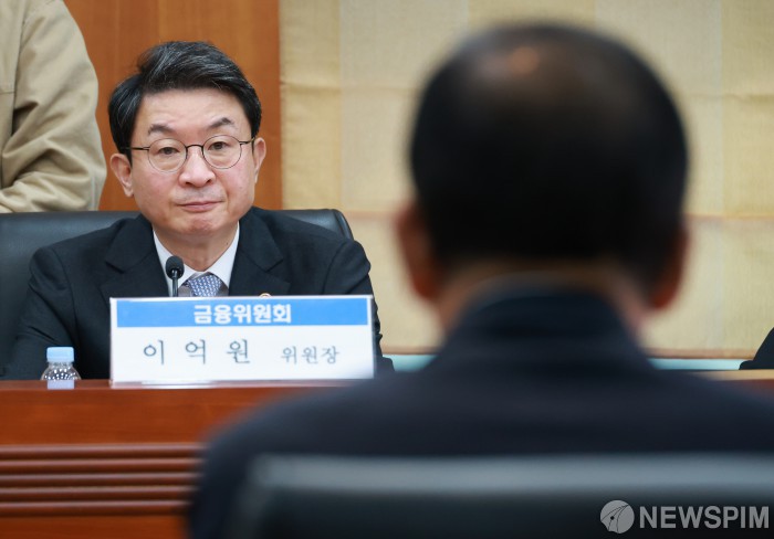 [서울=뉴스핌] 김학선 기자 = 이억원 금융위원장이 30일 서울 여의도 금융투자협회에서 열린 금융위원장-금융투자업계 CEO 간담회에서 서유석 금융투자협회장의 발언을 듣고 있다. 2025.10.30 yooksa@newspim.com