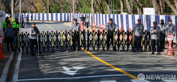 [경주=뉴스핌] 류기찬 기자 = 아시아태평양경제협력체(APEC) 정상회의에 참석하는 다카이치 사나에 일본 총리 방한일인 30일 오전 다카이치 총리의 숙소로 알려진 경북 경주시 라한셀렉트 경주에 경찰 관계자들이 배치되어 있다. 2025.10.30 ryuchan0925@newspim.com