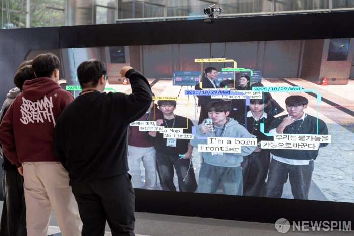 [서울=뉴스핌] 아산나눔재단(이사장 엄윤미)이 민간 최대 규모 창업경진대회 '2025 정주영 창업경진대회(이하 정창경)' 데모데이를 서울 코엑스에서 성황리에 개최했다고 30일 밝혔다.29일 열린 '2025 정주영 창업경진대회' 데모데이에서 현장에 마련된 '개척 메시지 갤러리' 포토존에서 참관객들이 사진을 촬영하고 있다.[사진=아산나눔재단]2025.10.30 photo@newspim.com