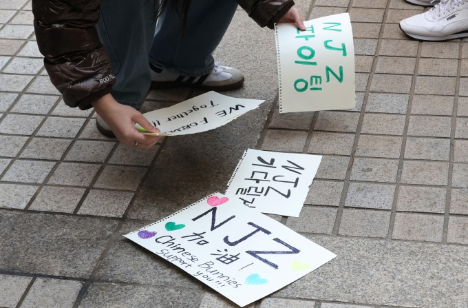| [서울=뉴스핌] 오광수 문화전문기자 = 뉴진스의 팬들이 응원 문구를 서울지방법원 입구에 펼쳐 놓고 있다. [사진 = 뉴스핌DB] 2025.10.30 oks34@newspim.com |
