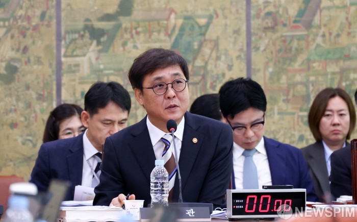 | [서울=뉴스핌] 최지환 기자 = 최휘영 문화체육관광부 장관이 14일 서울 여의도 국회에서 열린 문화체육관광위원회 국정감사에서 의원 질의에 답변하고 있다. 2025.10.14 choipix16@newspim.com |