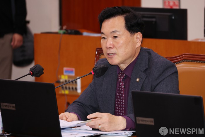 | [서울=뉴스핌] 이형석 기자 = 김승수 국민의힘 의원이 24일 오후 서울 여의도 국회에서 열린 문화체육관광위원회의 대한체육회, 국민체육진흥공단, 태권도진흥재단, 대한장애인체육회, 한국체육산업개발(주), 스포츠윤리센터 국정감사에서 의사진행 발언을 하고 있다. 2023.10.24 leehs@newspim.com |